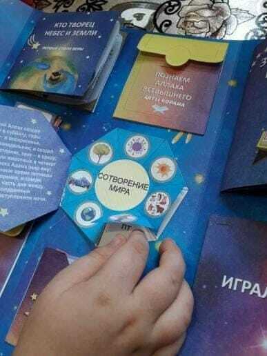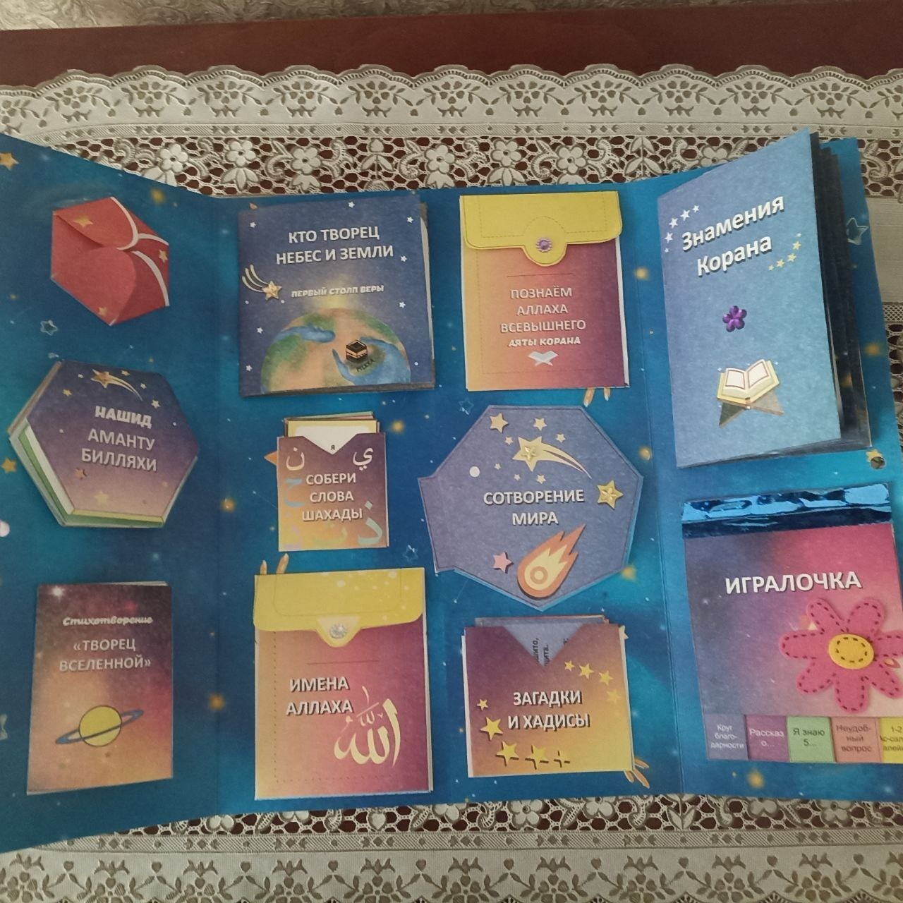 Лэпбук «Вера в Аллаха» состоит из 11-ти развивающих занимательных блоков с кармашками, дверками, окошками и подвижными деталями.