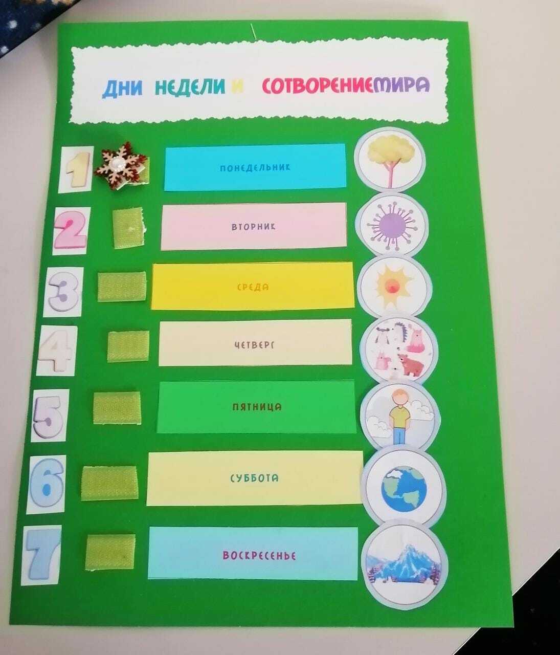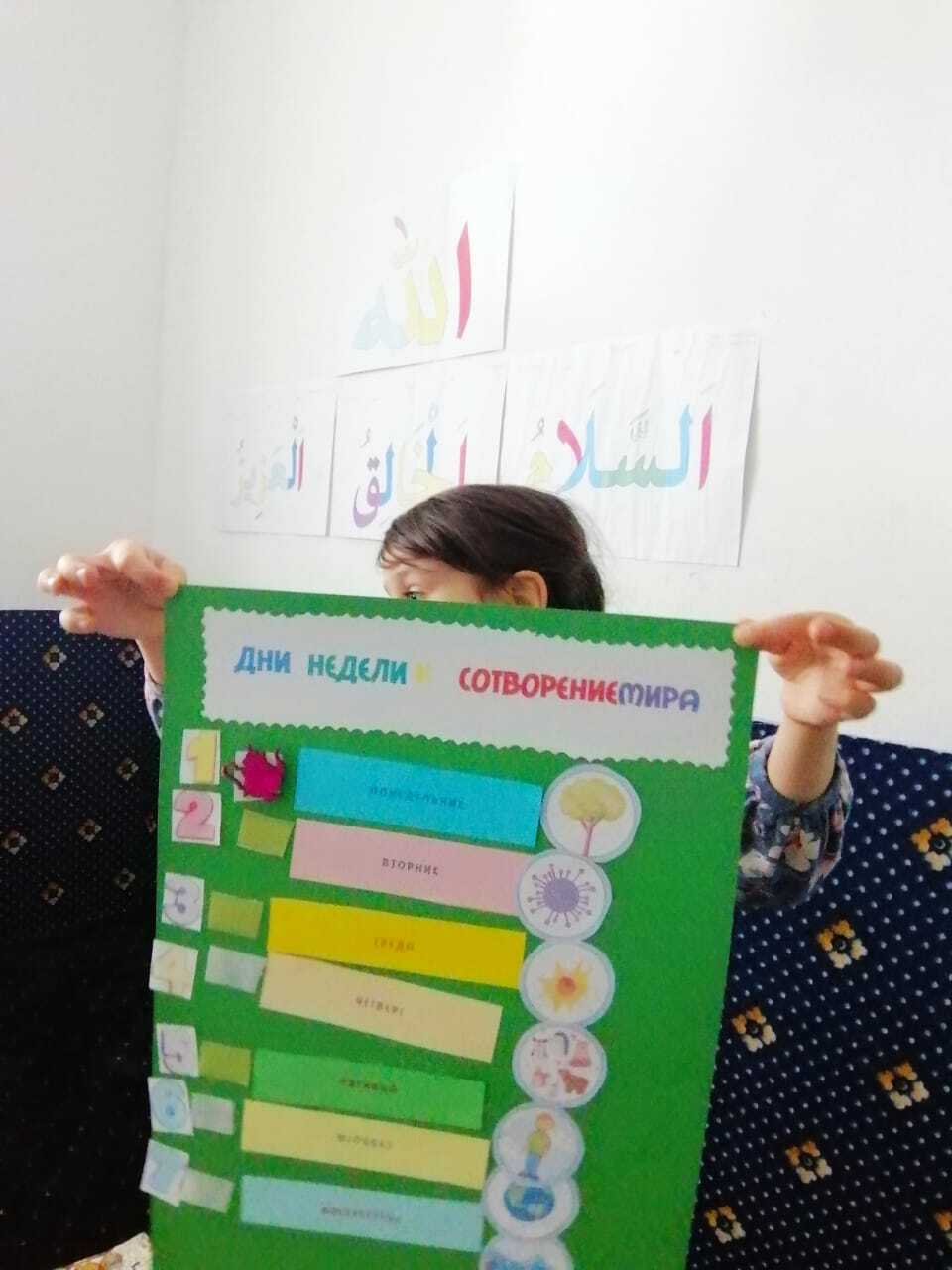 В течение всего учебного года необходимо будет прибегать и повторять, в какой день недели Аллах сотворил то или иное явление. Вместе с этим дети запоминают названия дней недели и их порядок.