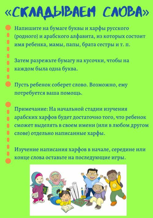 Чек-лист "Изучаем Арабский, Играя" 💝 ⠀ 🎨Около 10 подвижных и настольных игр для изучения арабского языка ⠀ 🎨 Для дома и медресе ⠀ 🎨 Для изучения букв и слов ⠀ 🎨 Ребусы ⠀ 🎨 Скидка на приобретение товаров магазина "Изучаем Ислам, Играя" ⠀ 🎨 Полезные ссылки ⠀ 📖 Всё это вы найдёте в полезном чек-листе с описанием игр при изучении арабского языка. ⠀ 📱Просто скачивайте, сохраняйте на телефон и у вас всегда под рукой будет шпаргалка, отвечающая на один из самых сложных вопросов: "Во что сыграть с ребенком?" ✨ ⠀ 🧡Порадуйте себя и других мусульм полезной информацией!