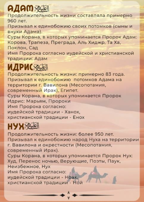🙂 Читатели познакомятся с интересными фактами из жизни пророков и посланников Аллаха, запомнят их имена, особенности и качества.