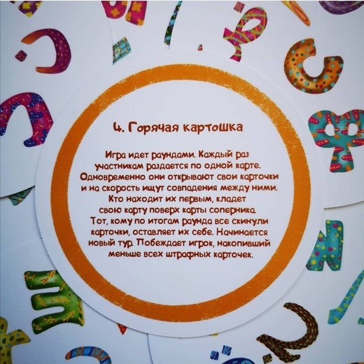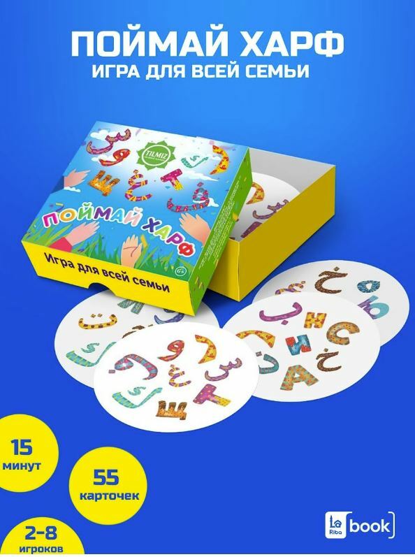 💝П О Й М А Й Х А Р Ф! — это новая увлекательная командная настольная игра! 🎉 ⠀ 💖 Вариант популярной игры «Доббль» в модификации Юлии Замалетдиновой, кандидата психологических наук, автора и редактора многих книг, журналов, игр, развивающих пособий, руководителя проекта «Изучаем Ислам, Играя». ⠀ 🔹Играть могут как дети, так и взрослые, знающие и не знающие русские и арабские буквы. Ведь в процессе забавы игроки должны найти общие рисунки между двумя карточками. ⠀ 🔸Игроки, знакомые с буквами называют их. Те же, кто пока не знает, как называются буквы, имеют прекрасную возможность выучить их название и запомнить их изображение, что обязательно облегчит и ускорит знакомство с русским или арабским языком. ⠀ 🔹Описание вариантов игры с иллюстрациями и видеоинструкциями можно найти в сети Интернет, в том числе на авторских страницах Юлии Замалетдиновой. ⠀ 🔸Автор: Юлия Замалетдинова 🔹Дизайн карточек: Фарида Акпарова ⠀ 🐥3+ ⏰15 мин 👨👩👧👦2-8 игроков ⠀ 📚55 карточек ✏️5 карточек с правилами игры 📌Шпаргалка «Арабский алфавит» ⠀ 📏Размер коробки: 10 см*10 см 📐Диаметр карточек: 9,5 см 📦Вес: 185 грамм