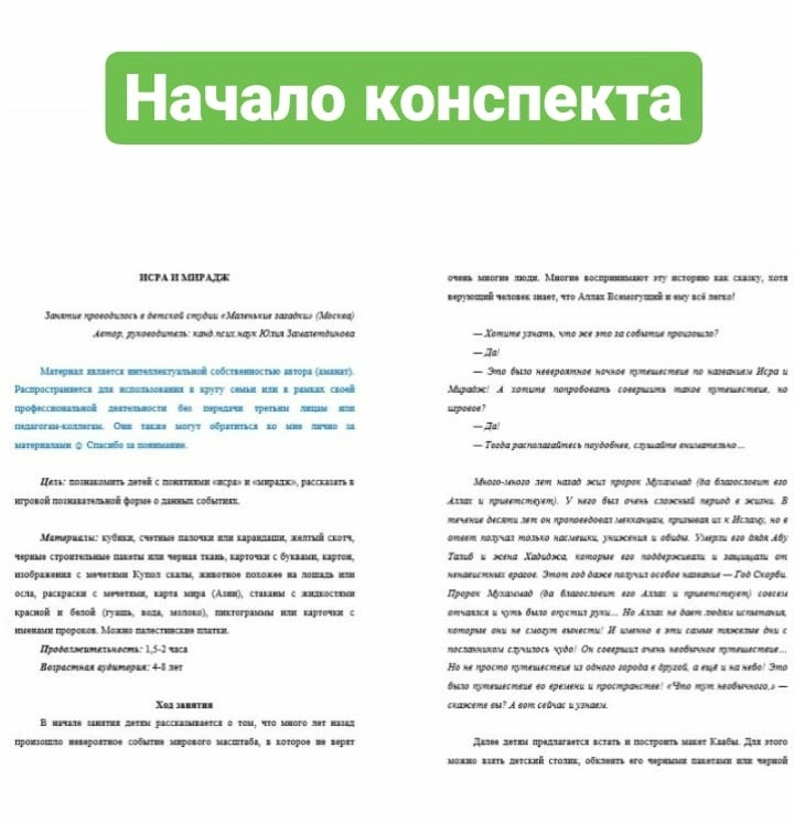 ✨На предстоящей неделе нас ждет, пожалуй, одна из самых невероятных ночей в истории человечества - ночь РАДЖАБ, в которую произошли ИСРА и МИРАДЖ. ⠀ ❓Знакомы ли вам эти события? ❓А вашим детям? ❓Хотите узнать подробнее и в игровой форме познакомить детей с чудесной ночью? ⠀ 🔥Я предлагаю вам свой авторский сценарий для проведения занятия, которое я сама неоднократно проводила в детской студии "Маленькие загадки". ⠀ ✏В тематическое занятие "Путешествие во времени и пространстве: Исра и Мирадж" входит: ⠀ 1. Подробный сценарий проведения занятия 2. Раскраски 3. Фотографии 4. Видео 5. Стихотворение 6. Загадки 7. Материалы по фикху 8. Материал для распечатки 9. Подробное описание о комплексе мечети Аль-Акса 10. Презентация о мечетях Аль-Акса, Купол Скалы и Первой Киблы. 11. НОВИНКА! Книжечка-самоделка по результатам квеста ⠀ 🎁🎁🎁 ⠀ Много-много лет назад жил пророк Мухаммад (да благословит его Аллах и приветствует). ⠀ 💧У него был очень сложный период в жизни: умерли его дядя Абу Талиб и жена Хадиджа, которые его поддерживали и защищали от ненавистных врагов. Этот год даже получил особое название — Год Скорби. ⠀ 💧Пророк Мухаммад (да благословит его Аллах и приветствует) совсем отчаялся и чуть было не опустил руки… ⠀ 🌈Но Аллах не дает людям испытания, которые они не смогут вынести! И именно в эти самые тяжелые дни с Посланником случилось чудо! Он совершил очень необычное путешествие… Но не просто путешествие из одного города в другой, а ещё и на небо! Это было путешествие во времени и пространстве! ⠀ 💫«Что тут необычного,» — скажете вы? А вот сейчас и узнаем...