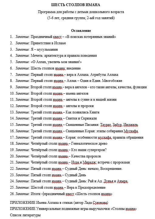 Программа для работы с дошкольниками "Шесть столпов имана" (второй год занятий) - БУМАЖНЫЙ ВАРИАНТ