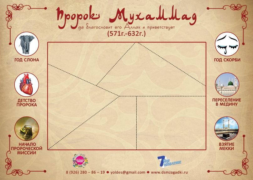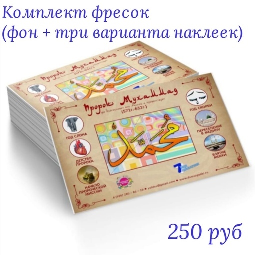 🎉🎉🎉 Это был невероятный квест "По следам пророка Мухаммада (да благословит его Аллах и приветствует)"! ⠀ 🐘 Нашествие слонов 🌠 Рождение пророка ❤ Раскрытие груди 💧 Год печали 🕋Взятие Мекки ♨ Самые настоящие битвы с курайшитами! 🎓 И многое-многое другое! ⠀ 🎁 А в конце ребят еще и ждал подарок: фреска-паззл, собрав и приклеив который, маленькие мусульмане получали плакатик напоминание о жизни посланника Аллаха (да благословит его Аллах и приветствует). ⠀ 🎉 Сегодня мы готовы поделиться с вами макетом фрески в трёх дизайнах! ⠀ 💶Цена: 250 рублей ⠀ 📚После оплаты вам придет ссылка на скачивание макета, который вы можете распечатать на плотной бумаге. Наклейки можно распечатать на специальной бумаге или приклеить клей-карандашом. ⠀ 🏠Использовать можно как дома, так и в медресе.