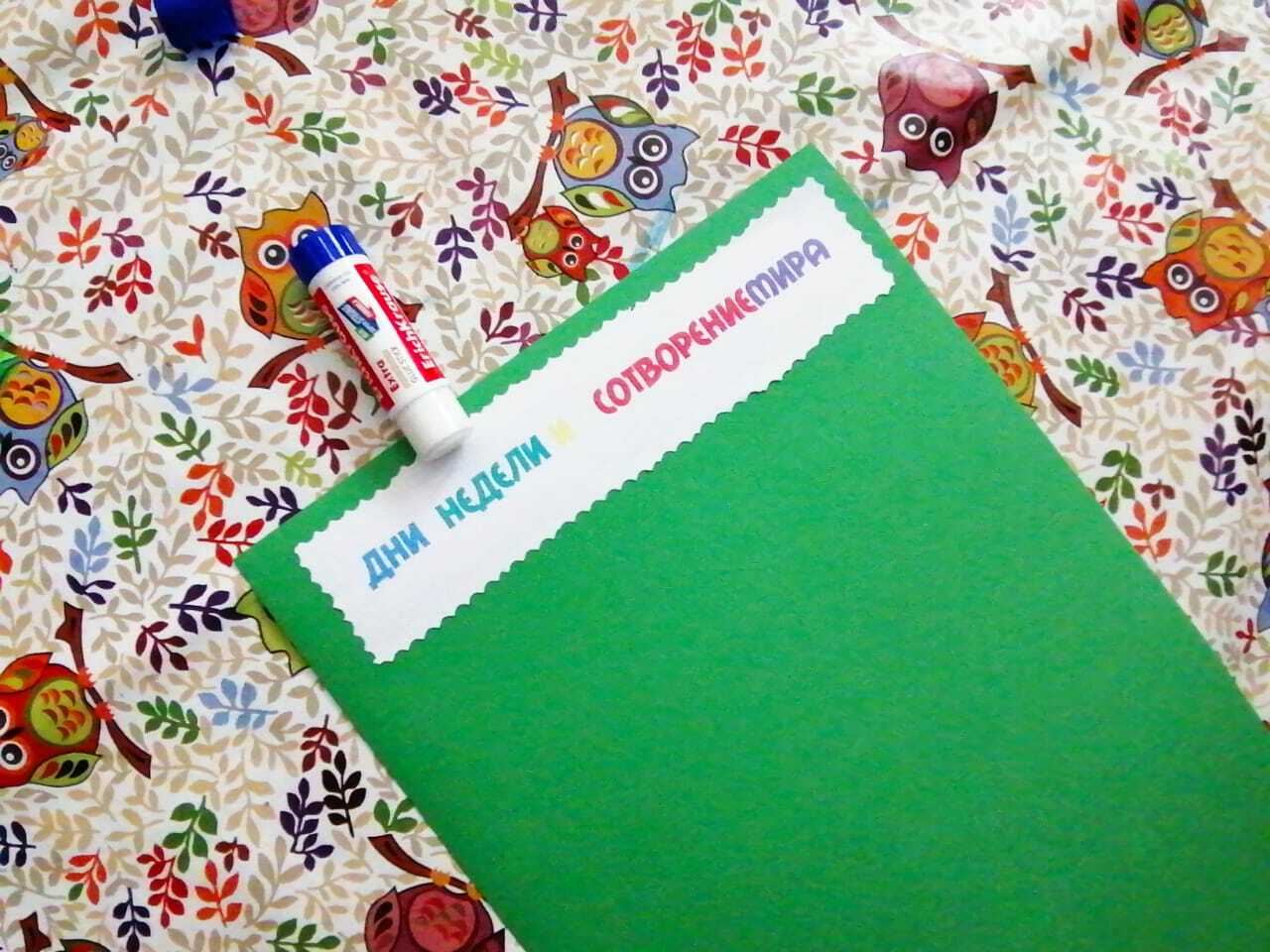 b) посередине на равном расстоянии друг от друга наклеить названия дней недели.