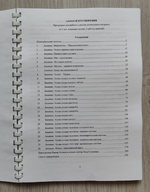 Программа для работы с дошкольниками "Аллах и его творения" (первый год занятий) - БУМАЖНЫЙ ВАРИАНТ