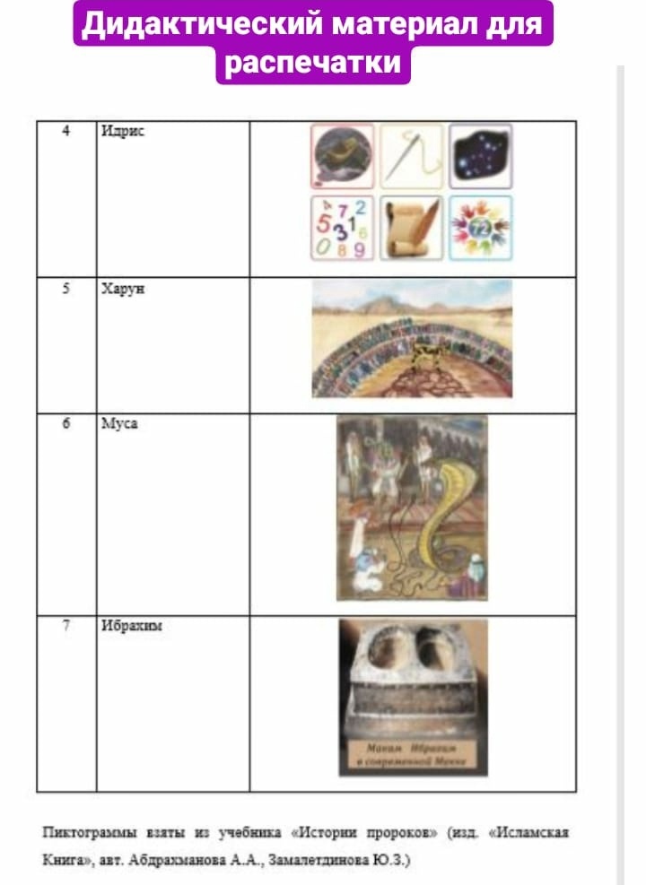 Четыре мини-книжки: • «Качества Пророков», • «Я верю в Посланников», • «Пророки и Писания», • Стихотворение «Пророки»